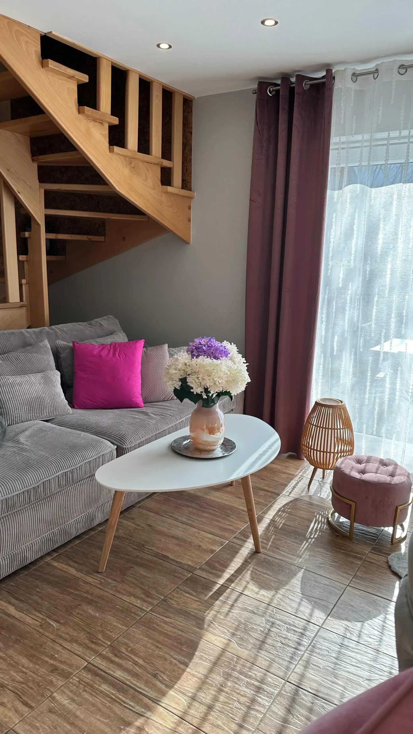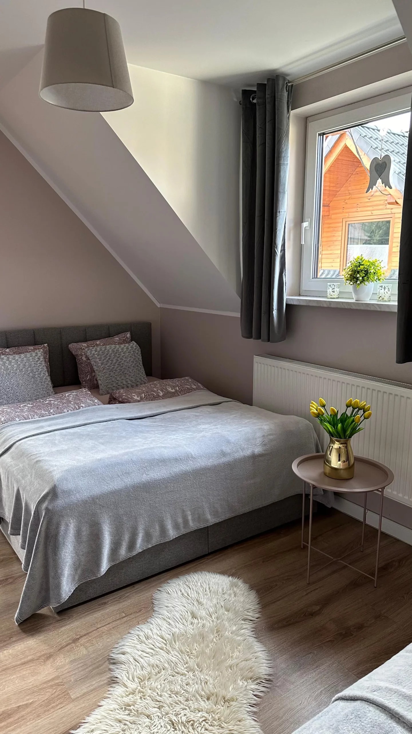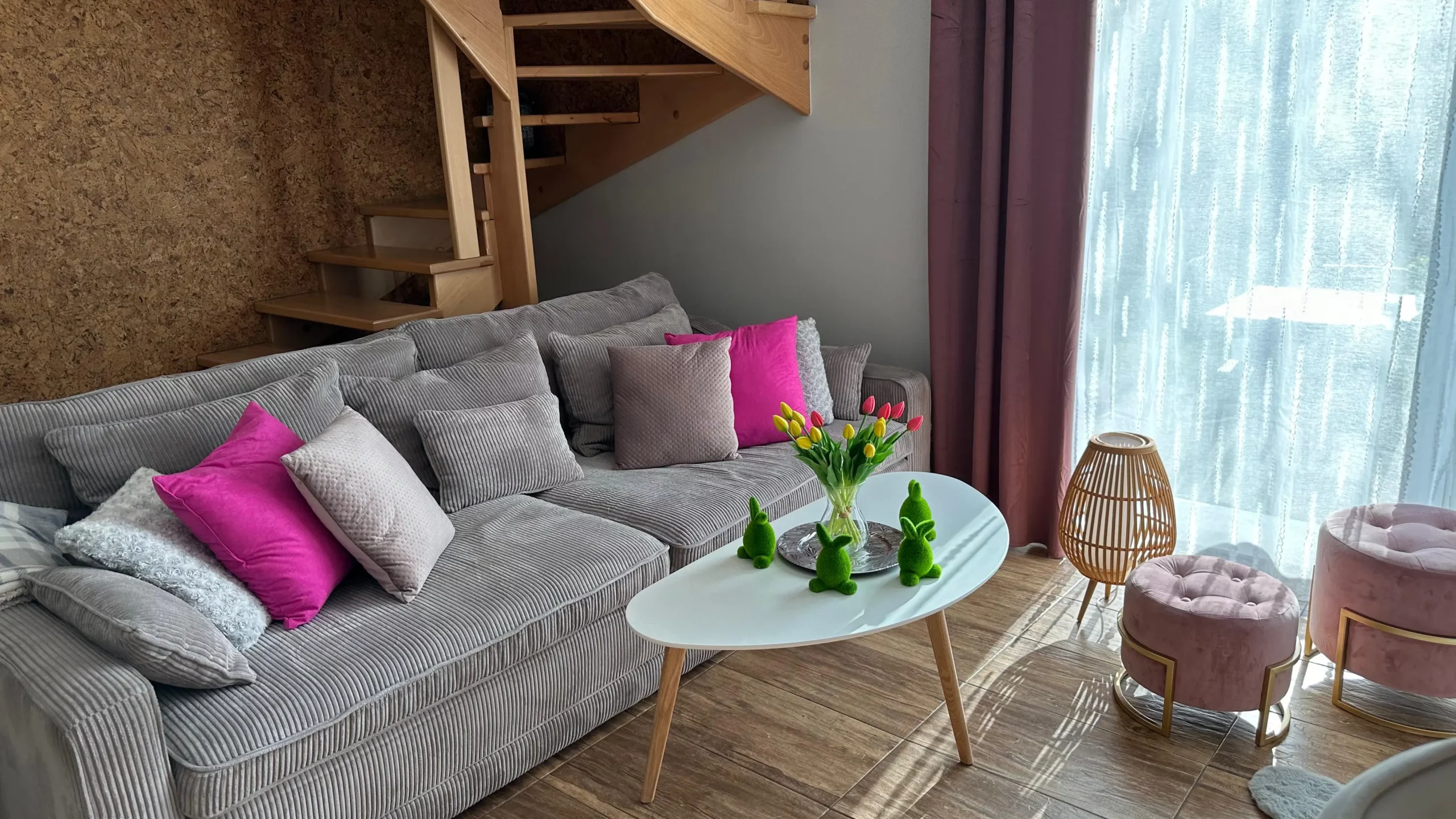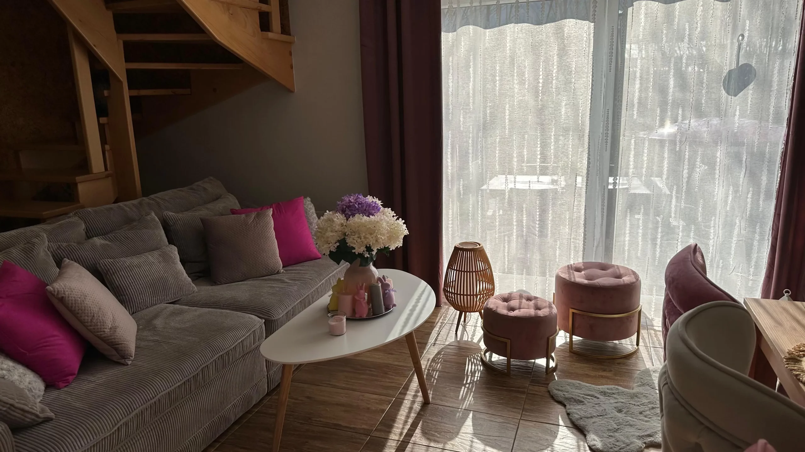Domek całoroczny z delikatną, romantyczną aranżacją.