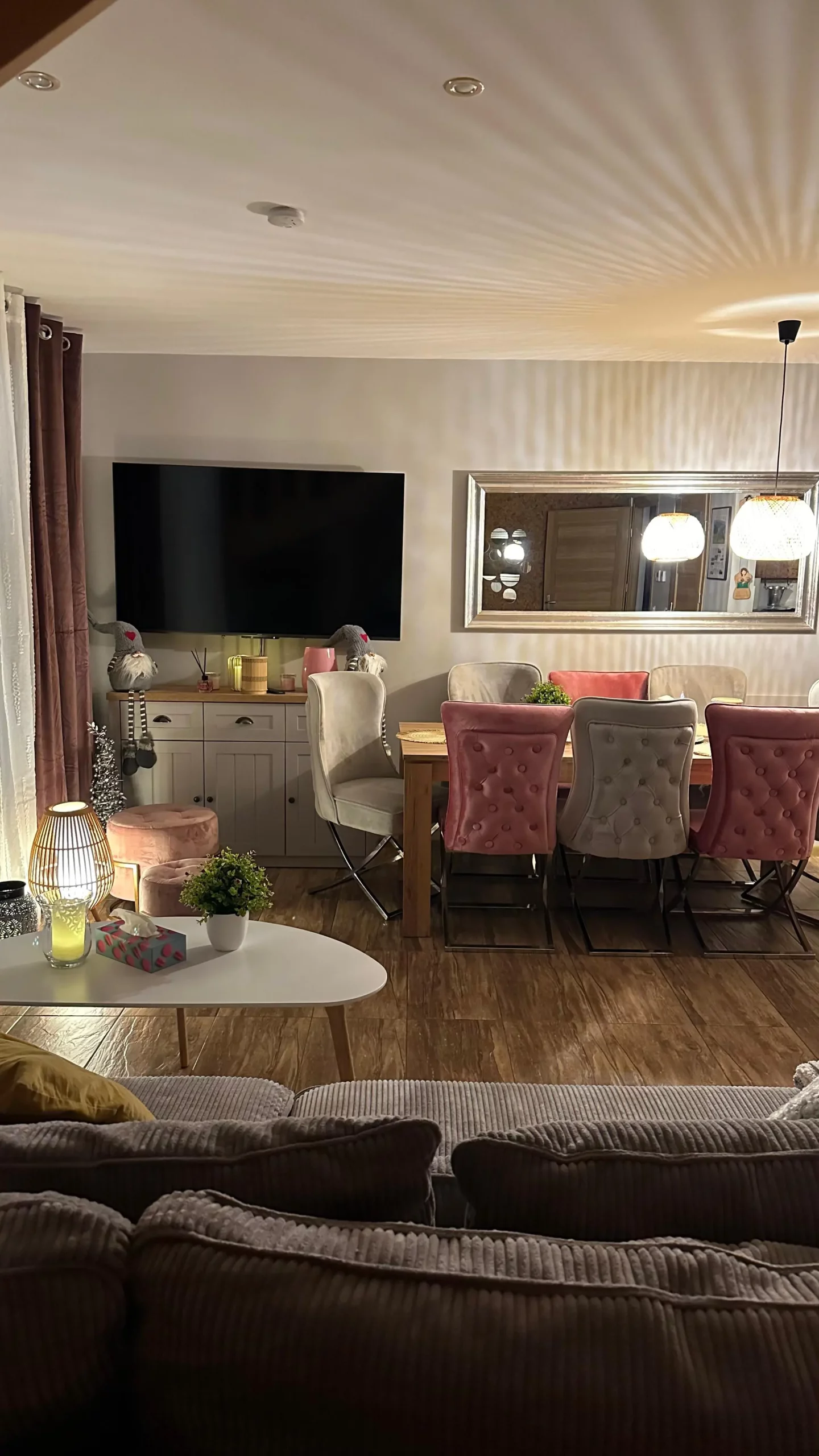 - salon z wyjściem na taras, TV i rozkładaną sofą