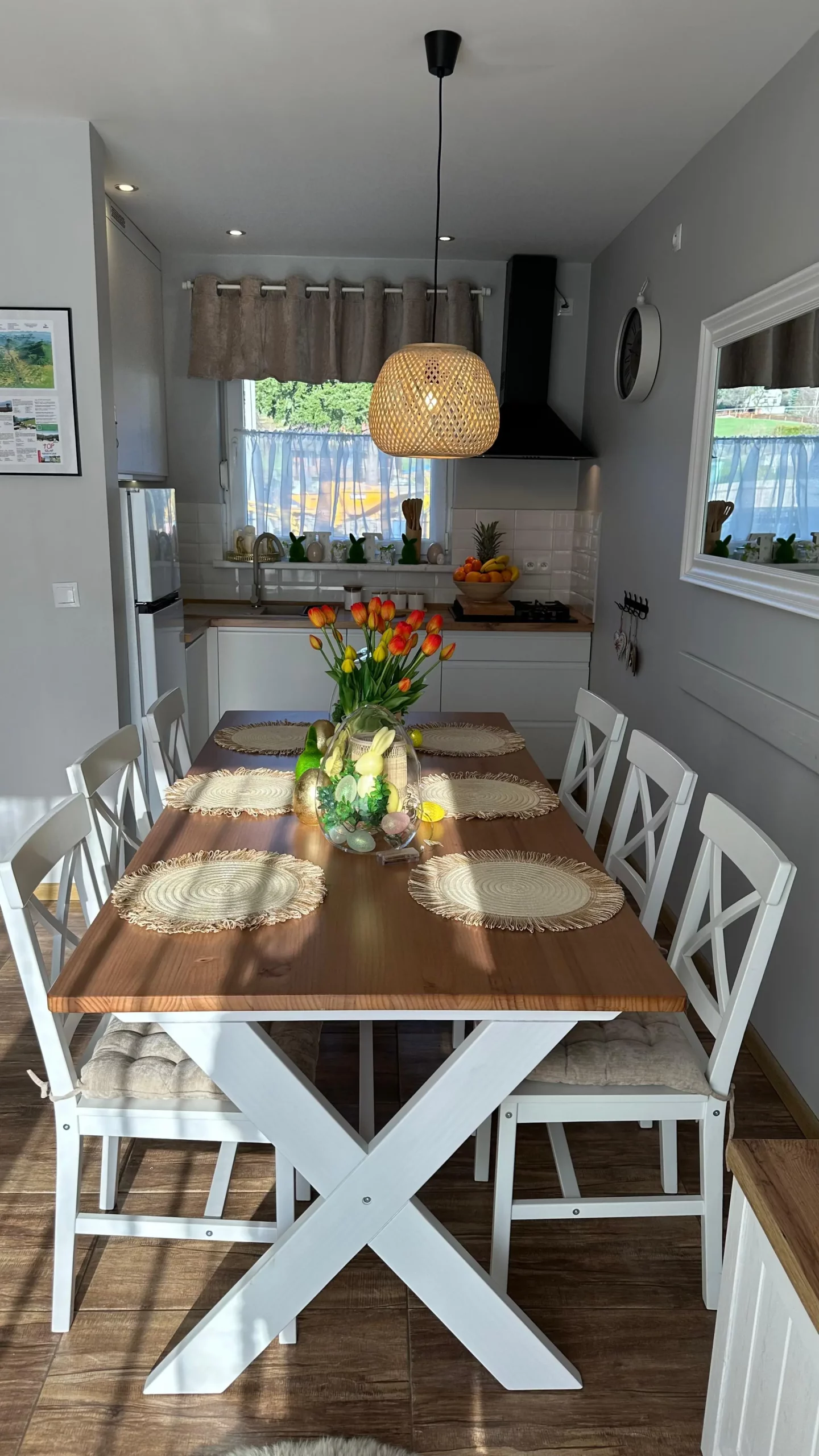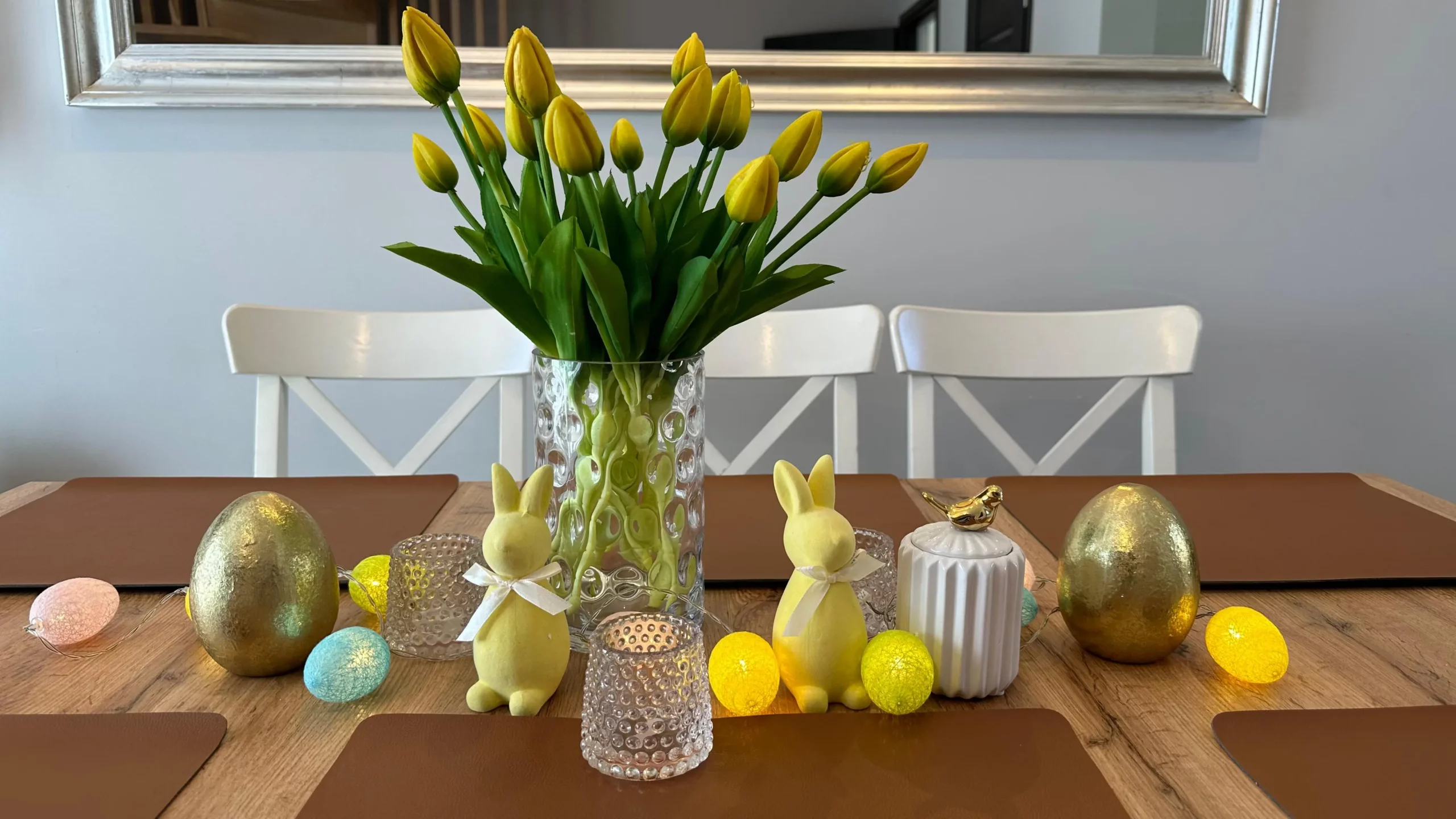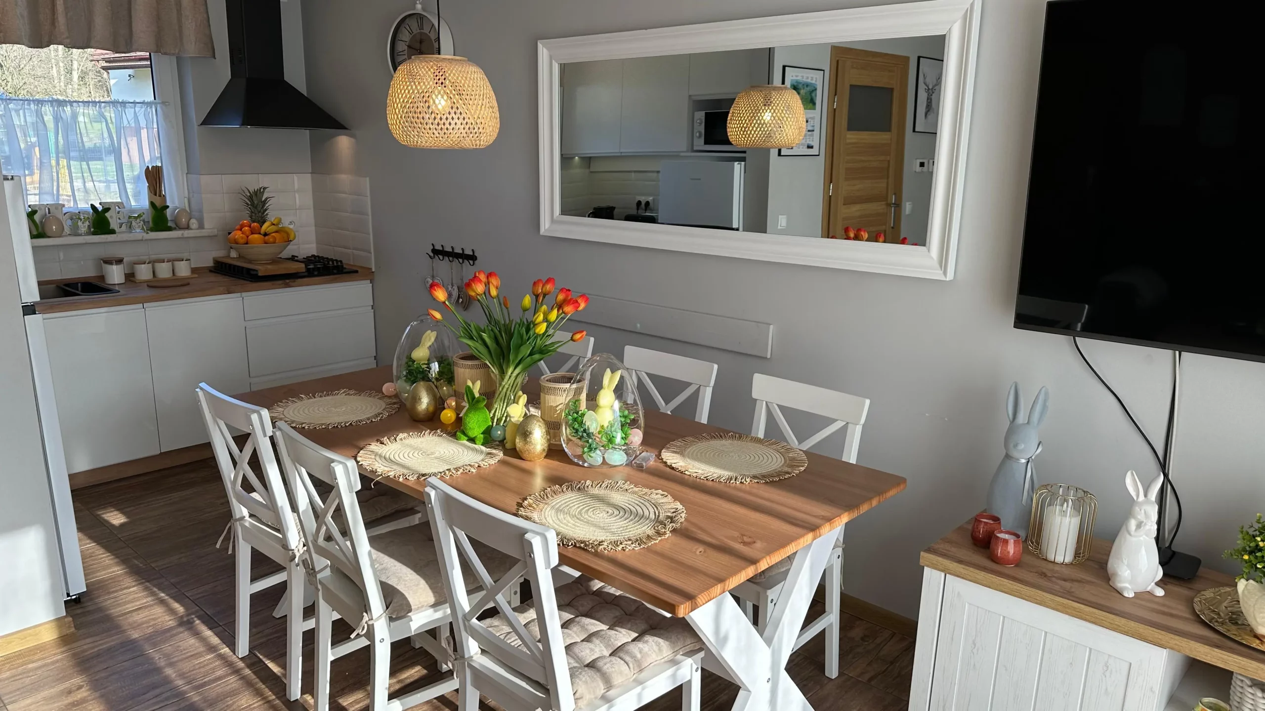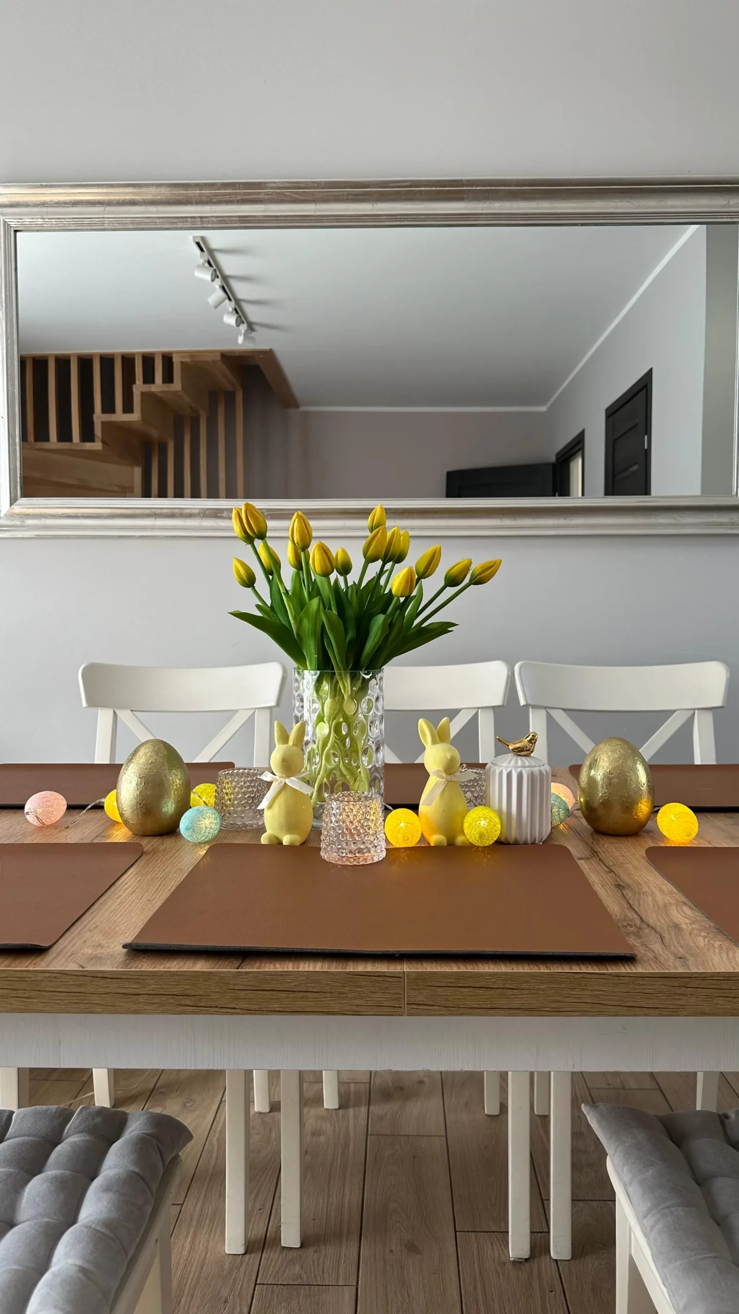 • Antek - stół w jadalni z ozdobami Wielkanocnymi