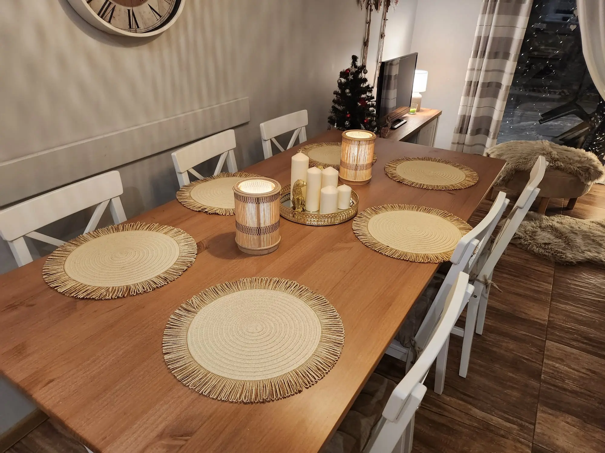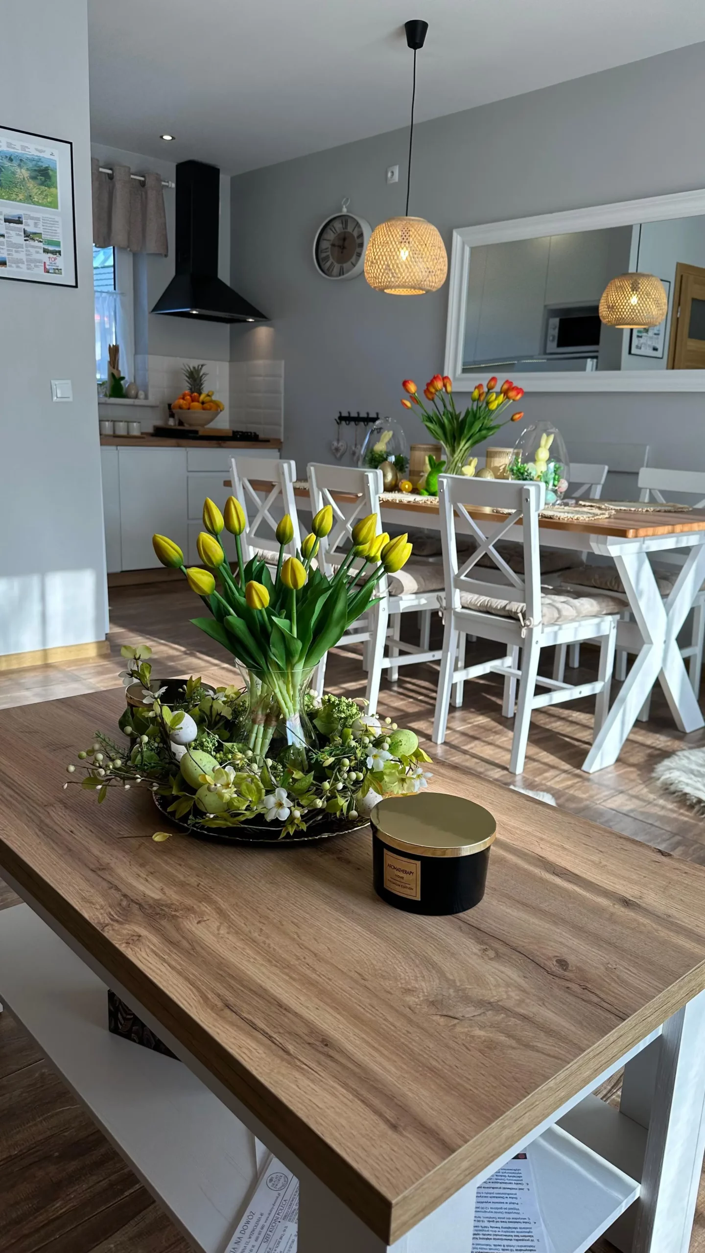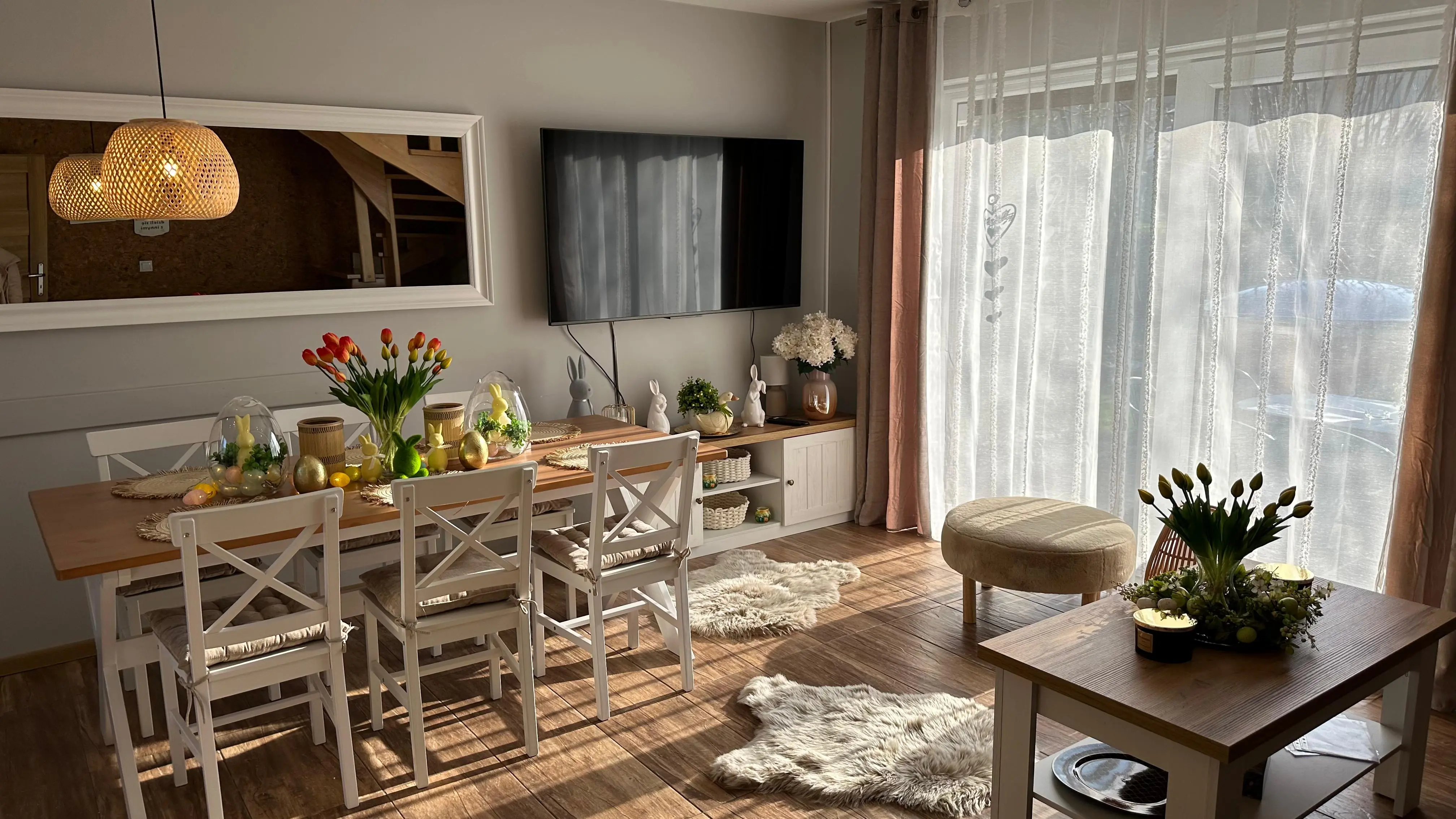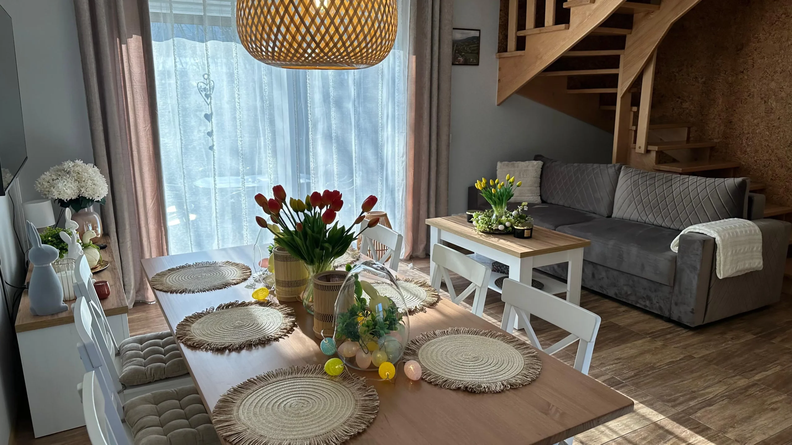 • Antek - stół w jadalni z ozdobami Wielkanocnymi